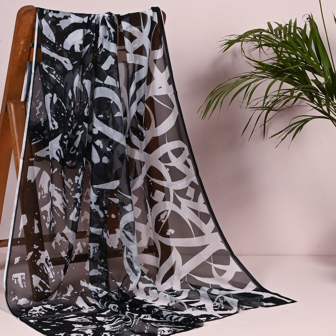 Elevate your style with this exquisite black and white tissue silk dupatta, featuring intricate digital prints. Lightweight and luxurious, it's perfect for adding a touch of elegance to any outfit, whether for festive occasions or sophisticated everyday wear.