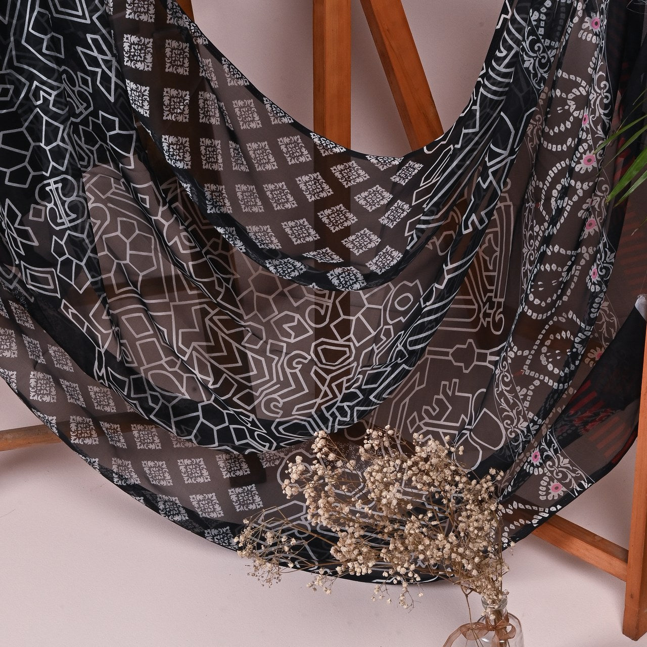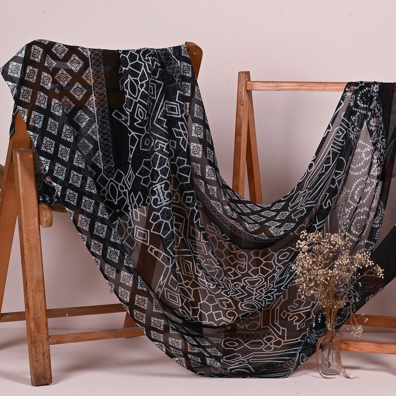 Elevate your style with this exquisite black and white tissue silk dupatta, featuring intricate digital prints. Lightweight and luxurious, it's perfect for adding a touch of elegance to any outfit, whether for festive occasions or sophisticated everyday wear.