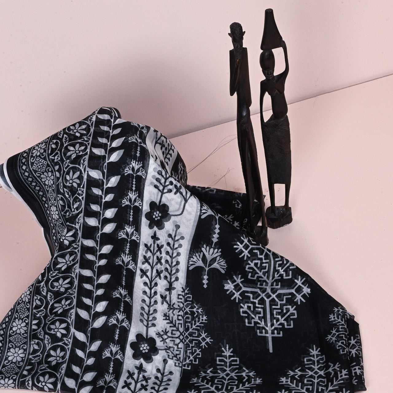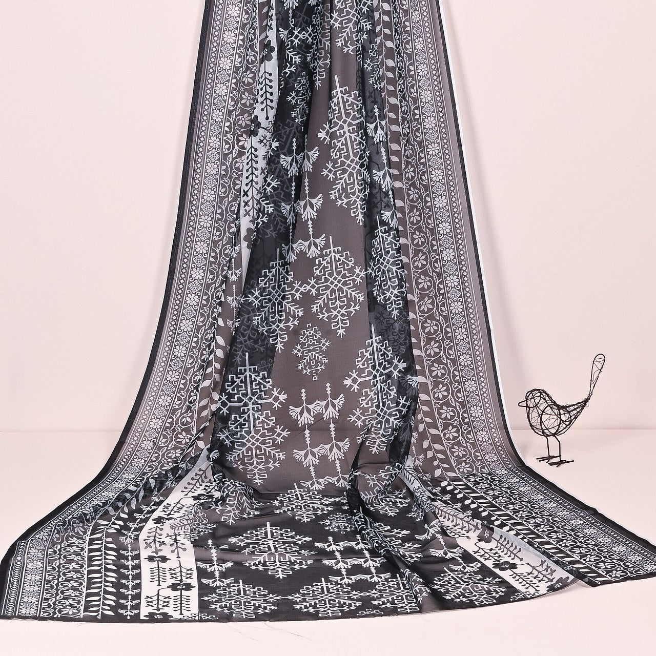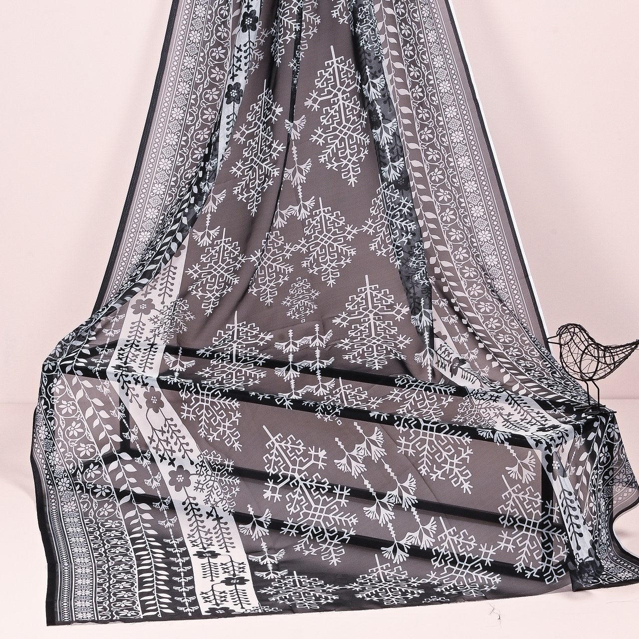 Elevate your style with this exquisite black and white tissue silk dupatta, featuring intricate digital prints. Lightweight and luxurious, it's perfect for adding a touch of elegance to any outfit, whether for festive occasions or sophisticated everyday wear.