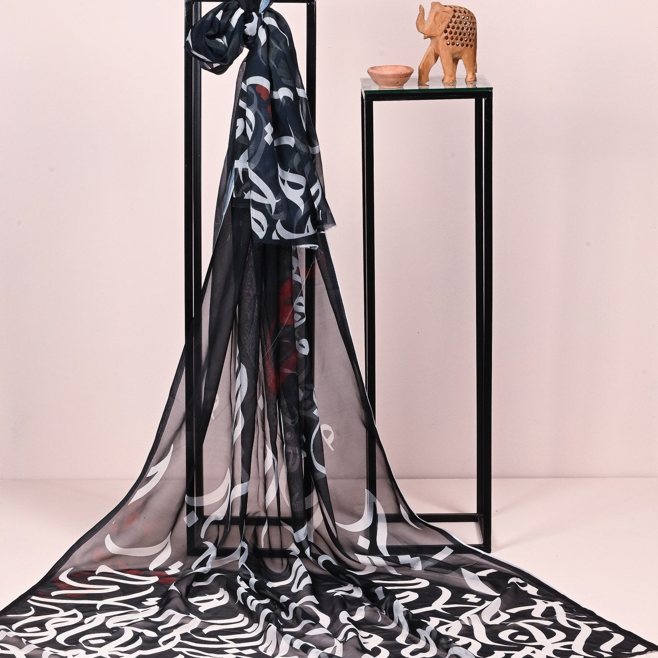 Elevate your style with this exquisite black and white tissue silk dupatta, featuring intricate digital prints. Lightweight and luxurious, it's perfect for adding a touch of elegance to any outfit, whether for festive occasions or sophisticated everyday wear.