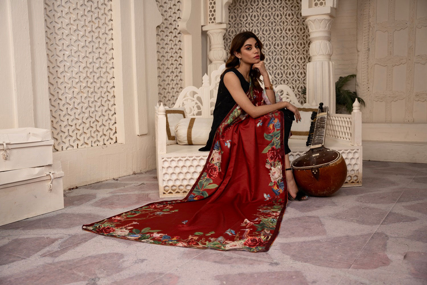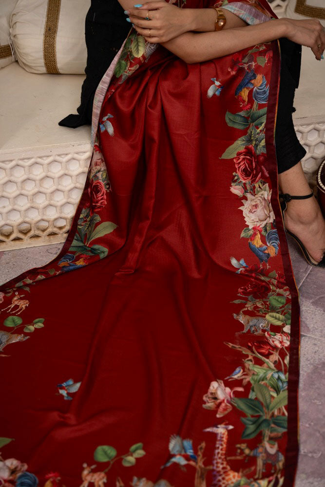 Featuring a rich printed rendered in a beautiful shade of red, Bist is the perfect shawl for any occasion.