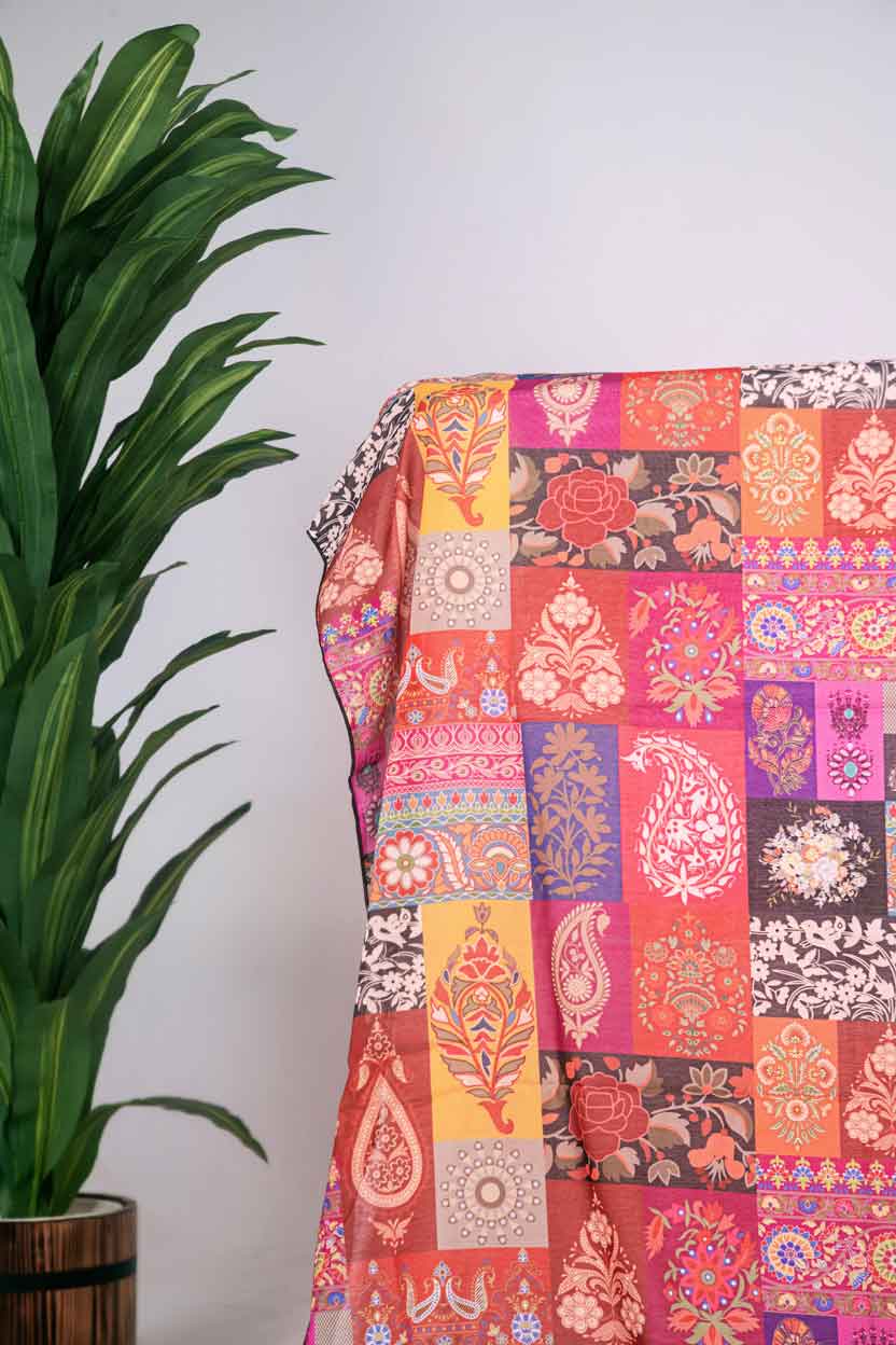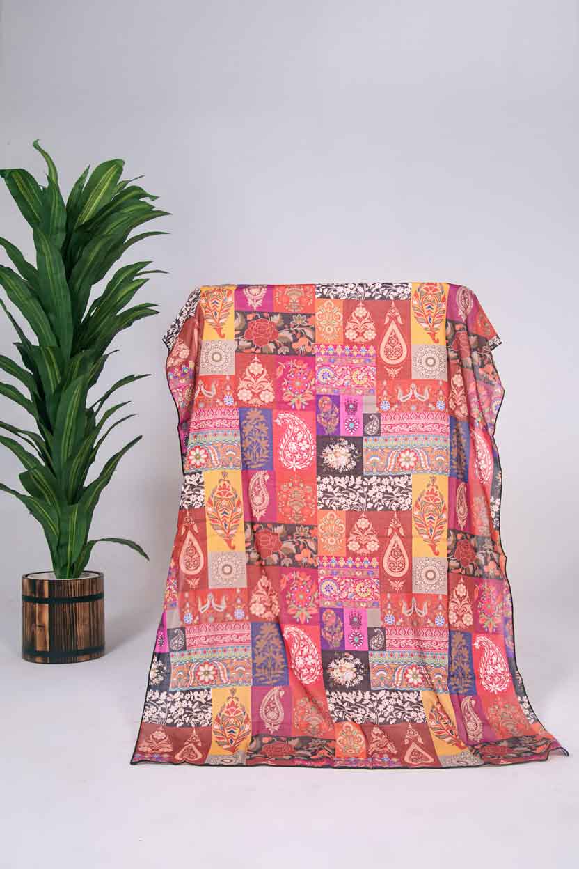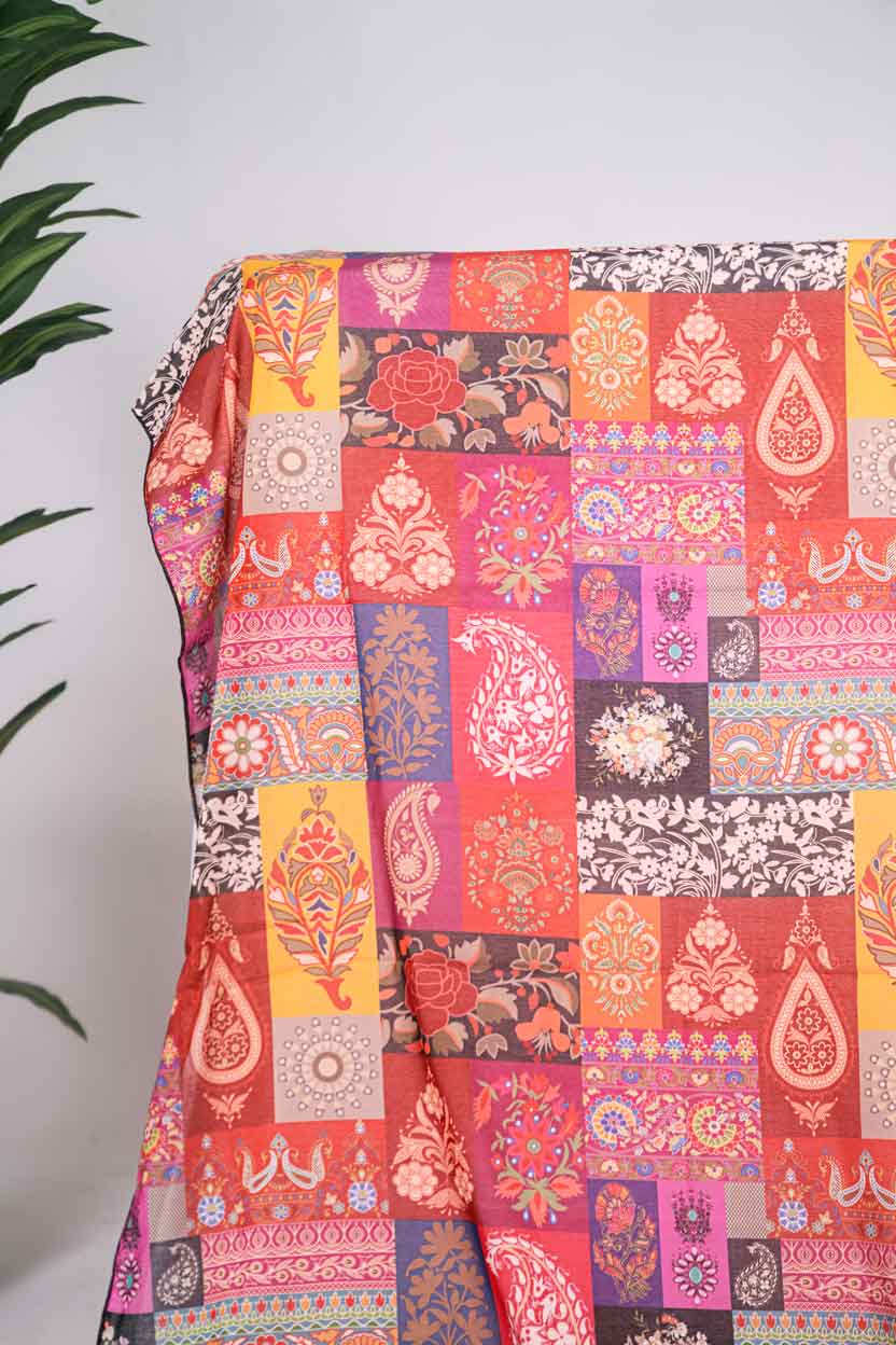 Boteh is an ideal choice for fall outfits. It features unique, mosaic-like pattern in vibrant red tones.