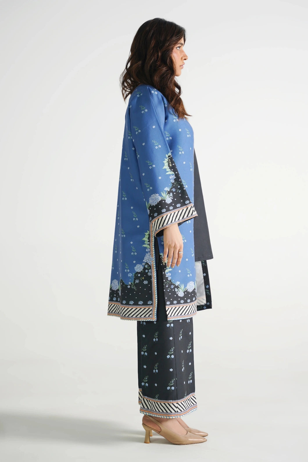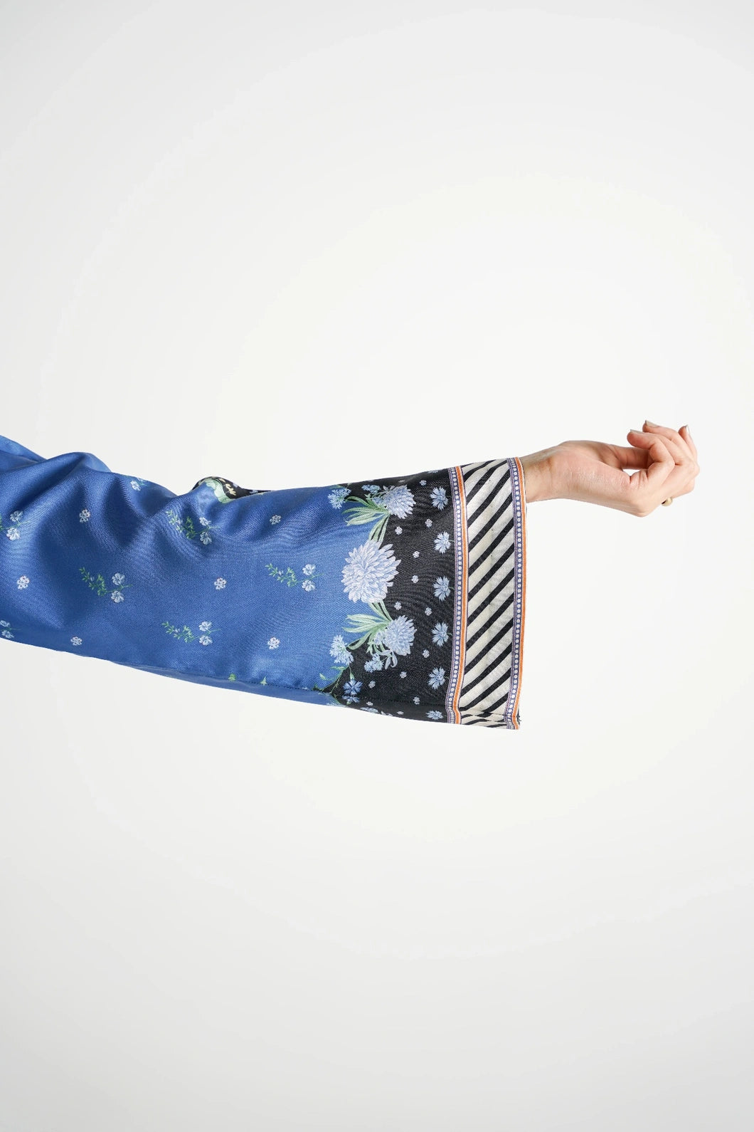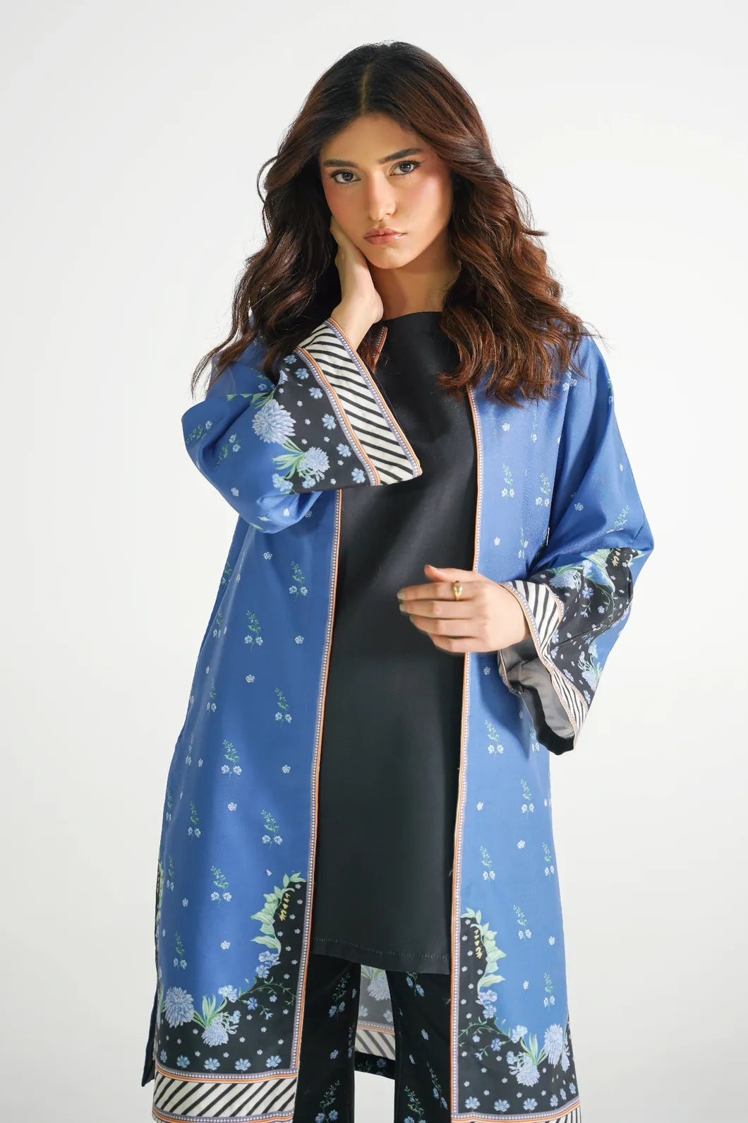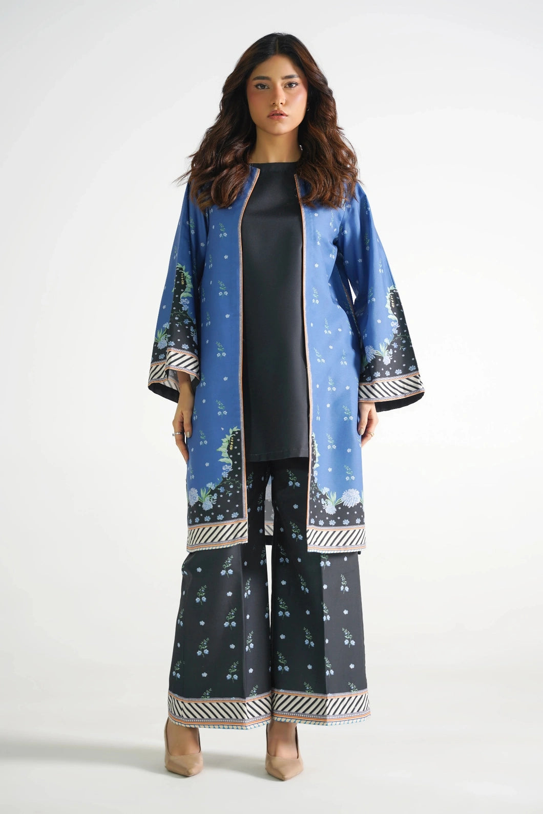 A contemporary three-piece set by Zaymal, designed for effortless layering and modern everyday wear. Crafted in breathable cambric, this ensemble features a printed open-front jacket layered over a sleek inner, paired with matching printed culottes. The mix of soft florals and contrast borders adds depth while keeping the silhouette refined and versatile.