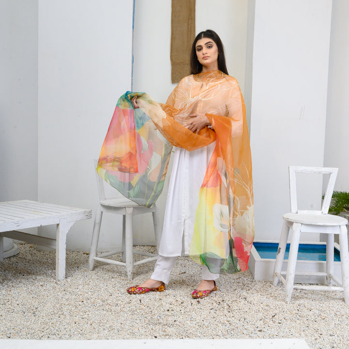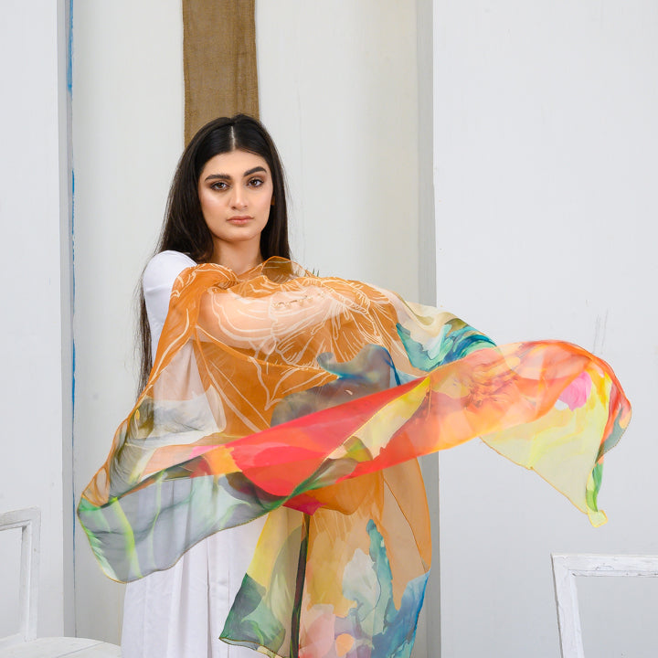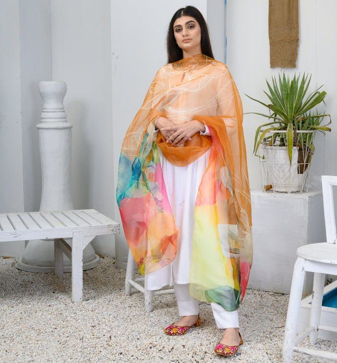 Perfect for jashan-e-baharan, this dupatta is all about fun and flirty colors. Bright and chirpy, this dupatta is great for a day in college, brunch at Bisma’s and good old ladies’ day out. Add jhumkis and khussas to complete the desi-girl look.