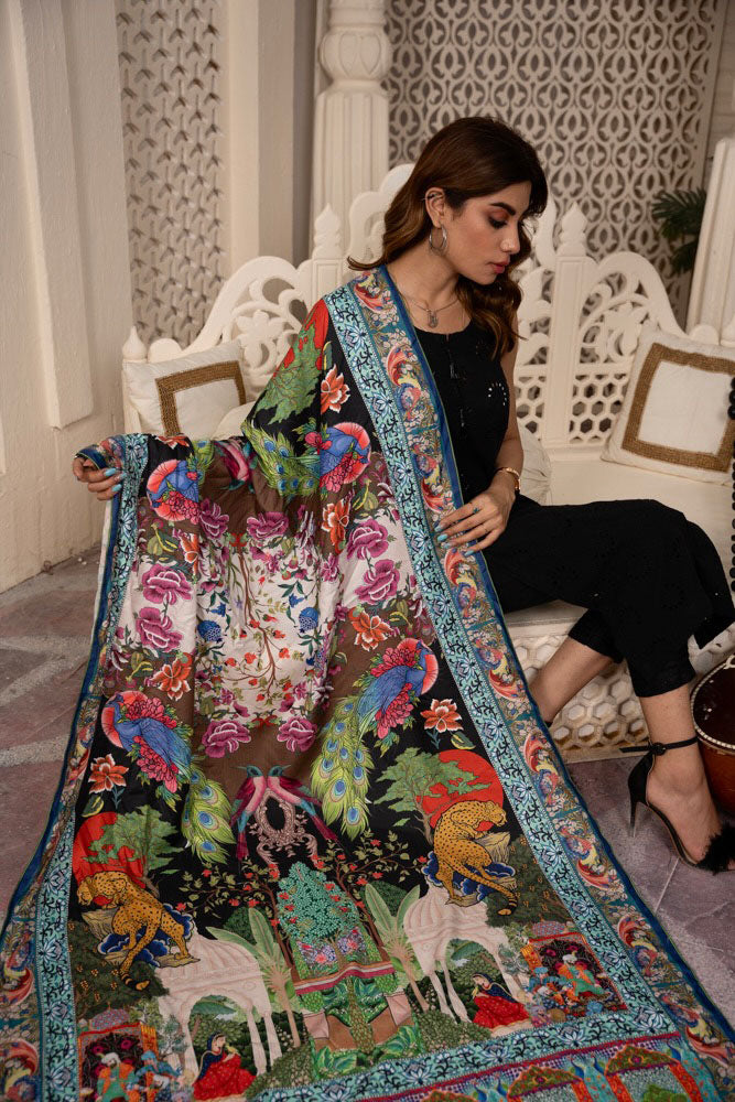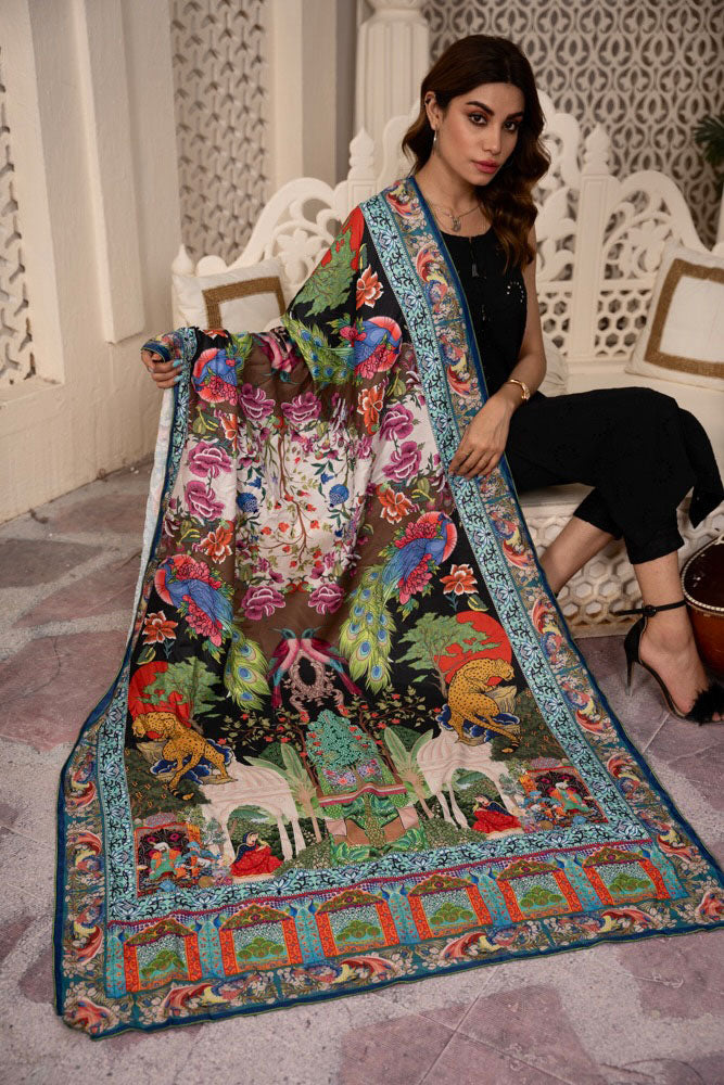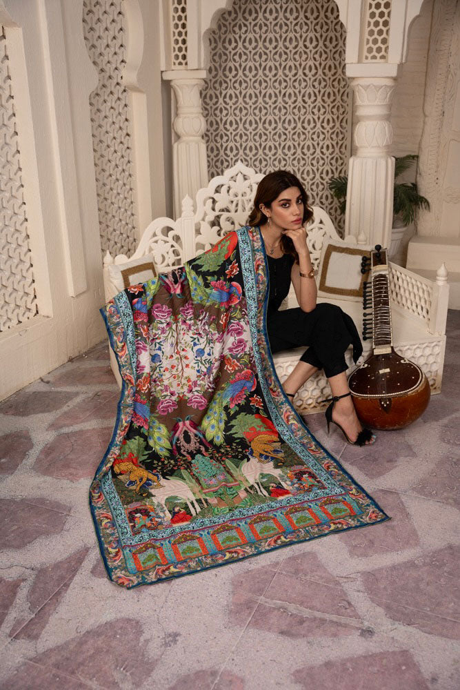 This Mustang Shawl is crafted with exquisite mughal art, adding a beautiful touch to any outfit. Made with high quality materials, this shawl will bring a touch of elegance to your look.