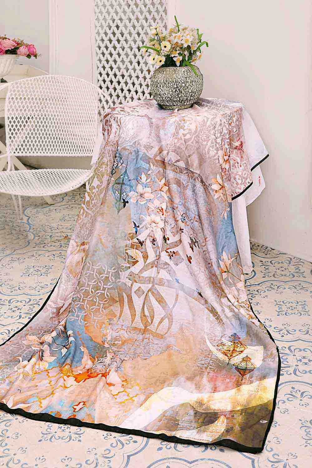 A collection of lightweight and soft amber silk dupattas, that are perfect for any occasion. Featuring exquisite, digitally printed calligraphy designs. You will be sure to stand out in the crowd with our Ramadan Edit of Silk Dupattas.