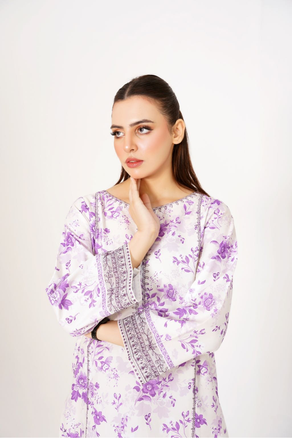 Sifra is the epitome of charm, blending soft ivory with lavender florals and intricate embroidery.